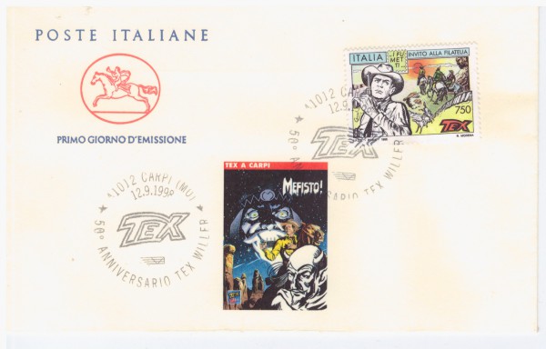 CARPI 50 ANNIVERSARIO TEX WILLER ANNULLO FILATELICO Pubblicato in Filatelia - Letto 1771 volte Anno: 12.09.1998 Vai alla scheda