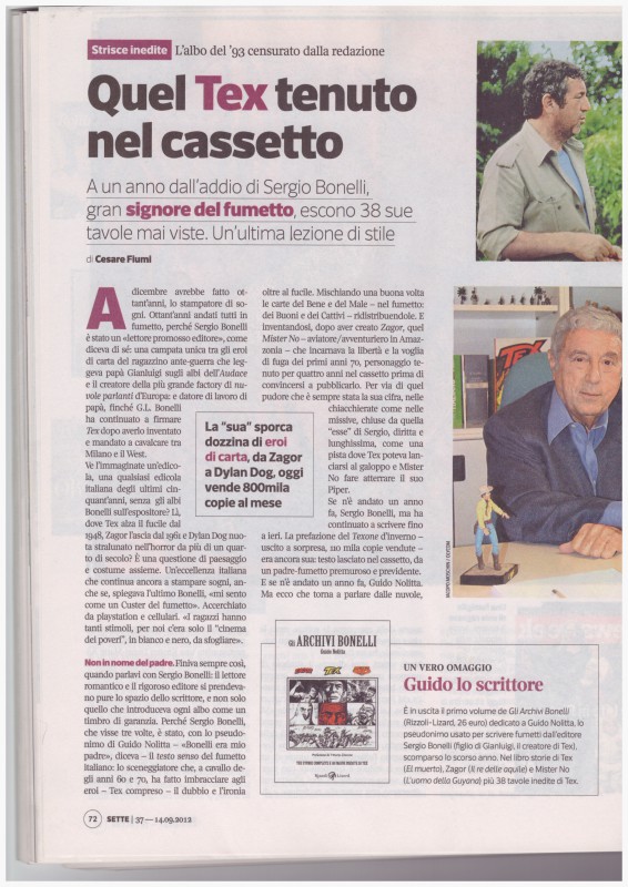 LA RIVISTA SETTE DEL 14-09-2012 PRESENTA QUEL TEX TENUTO NEL CASSETTO