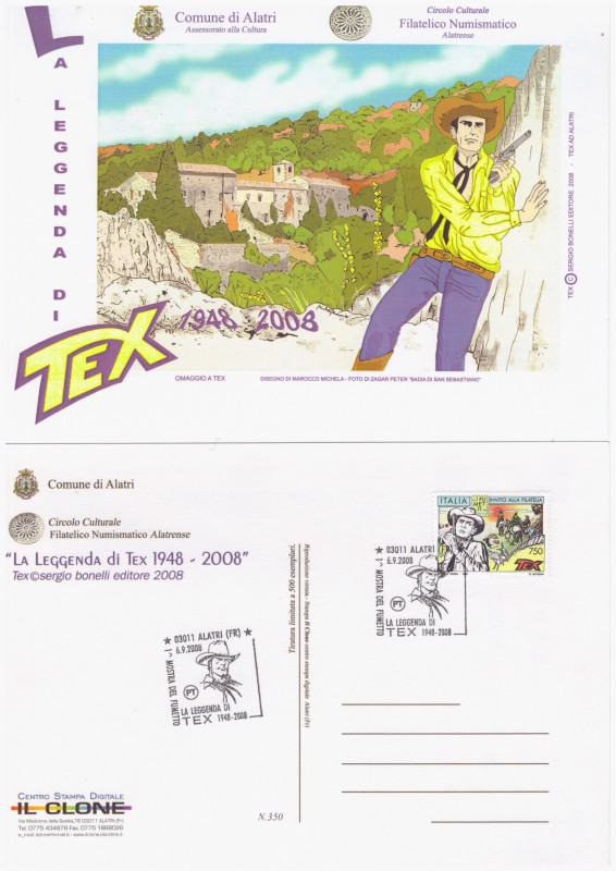 LA LEGGENDA DI TEX CARTOLINA CENTRO FILATELICO ALATRENSE Pubblicato in Cartoline - Letto 1550 volte Anno: 2008 Descrizione: LA LEGGENDA DI TEX 1948 -2008 DISEGNO MAROCCO MICHELA Torna su ⤴