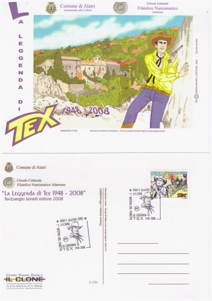 LA LEGGENDA DI TEX CARTOLINA CENTRO FILATELICO ALATRENSE Pubblicato in Cartoline - Letto 1549 volte Anno: 2008 Vai alla scheda