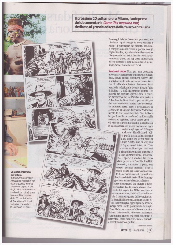 LA RIVISTA SETTE DEL 14-09-2012 PRESENTA QUEL TEX TENUTO NEL CASSETTO