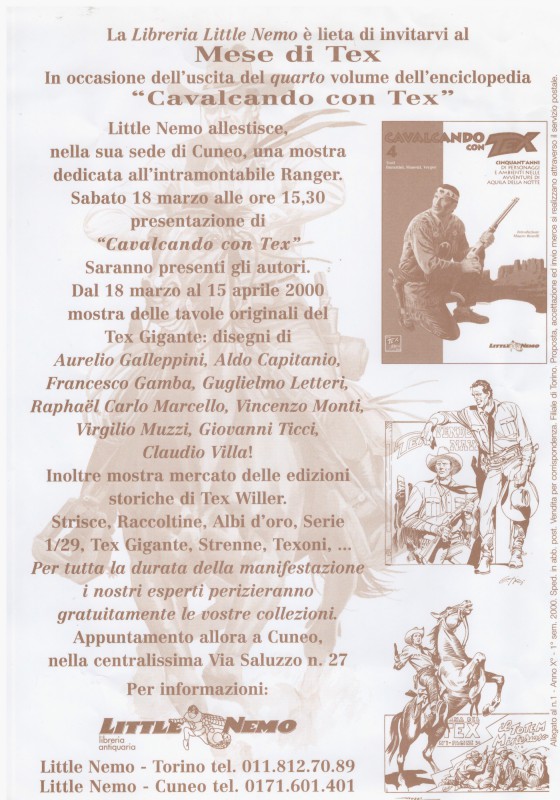 LA LITTLE NEMO " PRESENTA CAVALCANDO CON TEX"MOSTRA TENUTASI A CUNEO , IN OCCASIONE DELLA PRESENTAZIONE DEL QUARTO VOLUME